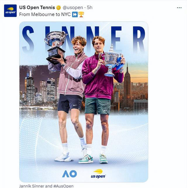 辛纳比赛后发推表示:感谢纽约,这是一个难以置信的特别时刻。在这里,我赢得了自己的第二个大满贯冠军,你们的支持对我意义重大。我热爱这项运动,它就是我的一切,感谢我的团队与家人,我们应该开始享受这一时刻了。