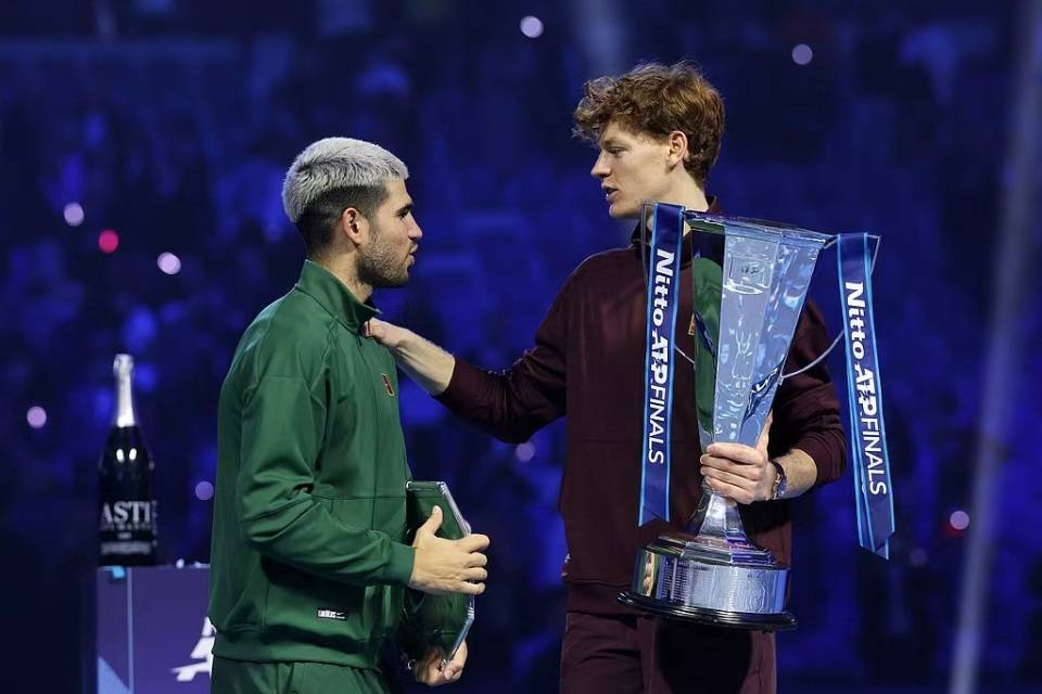赛后的颁奖典礼上,辛纳谦逊地向对手表达了敬意,称赞阿尔卡拉斯在发球方面的出色表现,并坦言阿尔卡拉斯一直是自己学习的榜样,激励着自己不断努力训练。而提前锁定年终世界第一的阿尔卡拉斯,则展现出了与赛场上截然不同的冷静和成熟。他坦然地肯定了两人整个赛季的竞争价值,并表示:“今年对我们来说都是非常棒的一年,我们始终保持着极高的竞技水平。我看到了你在美网之后又取得了进步。现在是时候为明年做好准备了,我已经迫不及待地迎接新赛季的到来。”