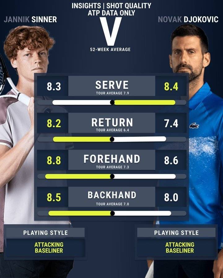 尽管澳网仍是德约科维奇的幸运地,但辛纳在过去五次与这位塞尔维亚名将的对战纪录中取得全胜,其中包括上个赛季于法国网球公开赛和温布尔登网球锦标赛4强战的直落三盘胜利。