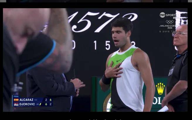 故事发生在第二盘比赛结束之后,阿尔卡拉斯敏锐地察觉到球场顶棚正在缓缓关闭。他立即向当值主裁判以及赛事裁判长提出了严正抗议。这位年轻的世界第一显得颇为不满,他多次向自己的团队表达不解,并坚持认为在当时的风向条件下,完全敞开的顶棚更有利于自己发挥,因为前四次破发都得益于此。