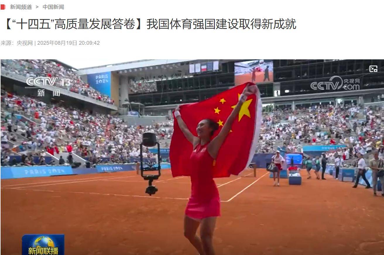 在这段关于体育强国建设的报道中,郑钦文作为网球项目的唯一代表出现,充分证明了她这枚奥运金牌的含金量,以及她在推动中国网球发展中所做出的杰出贡献。